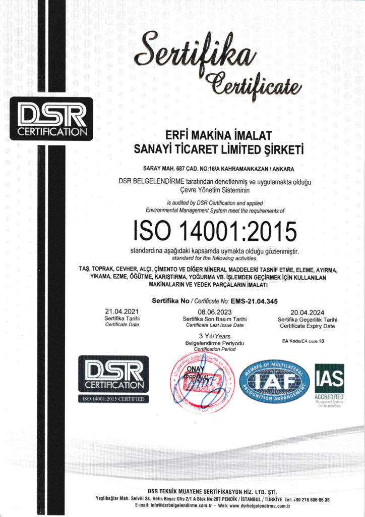 ERFİMİX applies certified ISO 9001:2015, ISO 14001:2015, ISO 45001:2018 quality management system.
